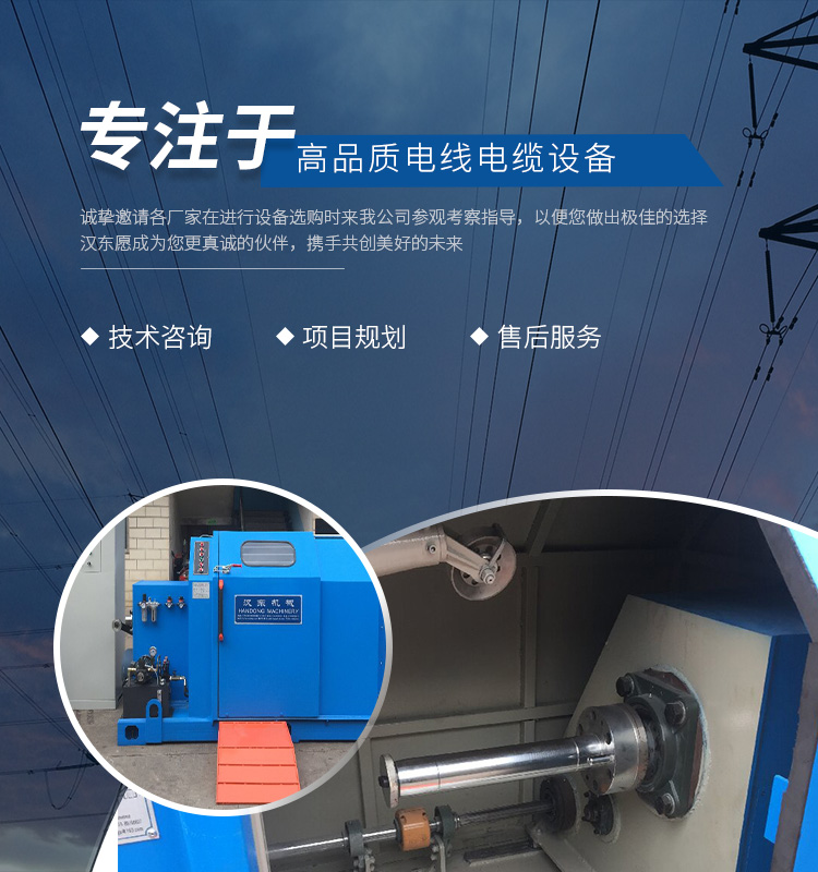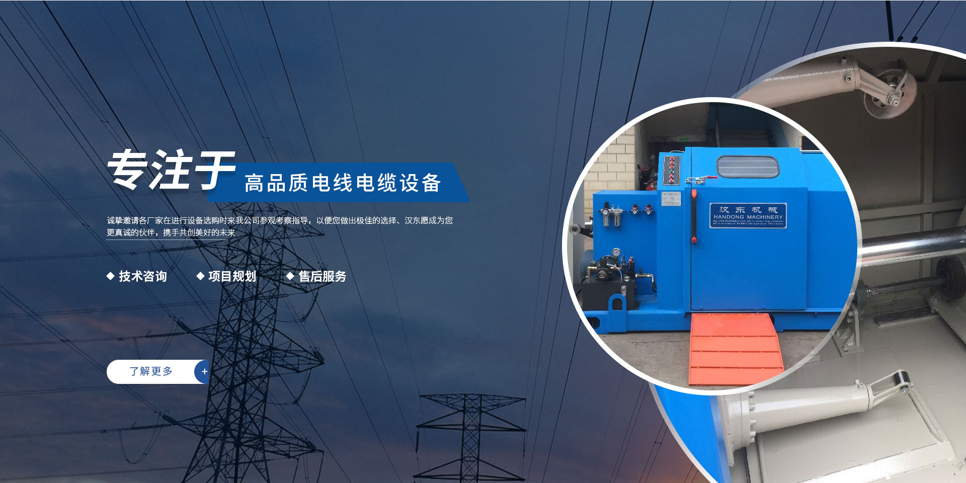 常州漢東機械始創(chuàng)于2006年,是集電線電纜機械設計、開發(fā)、制造、安裝、調試為一體化的高科技企業(yè)。本公司自開業(yè)以來,積極引進日本,歐美等國外電線電纜設備之先進技術,先后成功推出了達到行業(yè)先進水平的電線電纜設備,主要產(chǎn)品有擠出、繞包、束線、成纜等電線電纜固定設備。在提供系統(tǒng)設備的同時,還向客戶提供售前技術咨詢、項目規(guī)劃、以及售后服務。我公司本著“以人為本、科技先導、用戶為上”的宗旨,為客戶提供牢靠的產(chǎn)品與省心的服務。漢東愿成為您更真誠的伙伴,攜手共創(chuàng)美好的未來!
